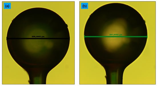 Photograph of the fabricated ball resonator under an optical microscope; (a) cross-section along the horizontal plane; (b) vertical plane.