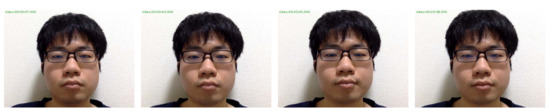As described in Section 1, to evaluate the effect of care quantitatively and objectively is important for scientific long-term care. However, the evaluation methods of care tend to depend on a subjective scale, such as observations and questionnaires. Therefore, it is difficult to use the obtained data as scientific evidence. Moreover, these assessment methods place a heavy burden on care evaluators, care recipients, or both. In addition, since scientific care is premised on using large-scale data, efficient data collection is required. In the past, to measure care effects objectively, an experiment that measured the changes in the facial expressions of people undergoing care was conducted []. In this experiment, facial features such as the height of eyebrows and the opening of eyes were measured from images based on the method called “facial expression analysis” of P. Ekman et al. [] and so on. However, they measured the features from the recorded video manually. Moreover, in the report, they concluded that “… Currently, we have not generalized this study successfully because of the limited number of cases. … To establish an objective evaluation method, we have to collect and analyze both the data of the objective people and the caregiver more”. From the above, to practice scientific long-term care, it is important to develop a computer-assisted service that enables us to automatically collect data that contribute to the quantitative assessment of care.
