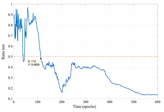 - Initialization: Set a predefined threshold for the ratio test: , e.g., . Set a predefined maximum count , e.g., . Set counter .