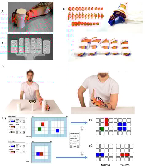 - Crema, A.; Malesevic, N.; Furfaro, I.; Raschella, F.; Pedrocchi, A.; Micera, S. A Wearable Multi-Site System for NMES-Based Hand Function Restoration. IEEE Trans. Neural Syst. Rehabil. Eng. 2018, 26, 428–440. [Google Scholar] [CrossRef]