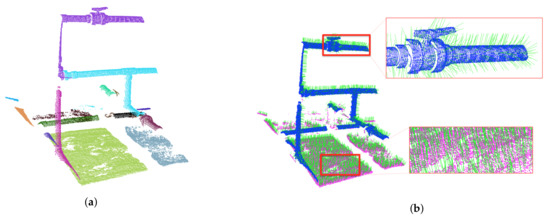 - Rabbani, T.; Heuvel, F.; Vosselman, G. Segmentation of point clouds using smoothness constraint. Int. Arch. Photogramm. Remote Sens. Spat. Inf. Sci. 2006, 36, 248–253. [Google Scholar]