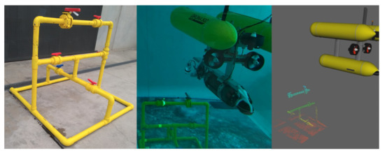 - In the work of Martin et al. [38], a deep learning approach was applied for the detection of pipes and valves. The network used, as input, 3D point clouds with RGB information obtained from stereo cameras, and the following steps were performed: