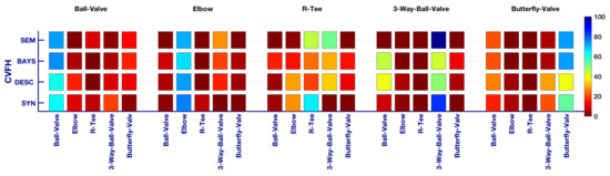 On the other hand, Table 4 shows the assessment of the results based on the accuracy, precision, recall and F1 score [62]. Three object classes, namely Ball-Valve, Elbow and Butterfly-Valve, have a balanced trend between recall and precision, resulting in a high F1 score that improves progressively from the descriptor-based to the Bayesian, and then to the semantics-based method.