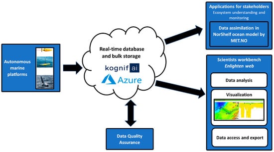 - Langeland, T.; Cook, J.; Tjøstheim, S.; Kristiansen, T.; Fonnes, G.; Lampe, O.D.; Pedersen, G.; Camus, L. A data management platform for data harvesting and analysis from autonomous marine measurement platforms. In Proceedings of the OCEANS 2019 Conference, Marseille, France, 17–20 June 2019; pp. 1–5. [Google Scholar]