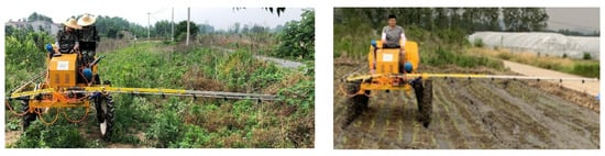 The necessity of pesticide application and its effect improvement has been addressed for decades. As the most important crop in Asia, rice is a crop that requires a high frequency and considerable amount of pesticide. Thus, the study of pesticide application in rice is essential. As a fundamental way, the small-scale high-clearance sprayers are widely used in South China and South Asia, where the land is small.
