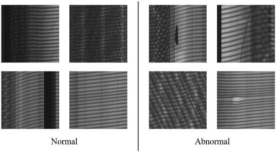 Normal and abnormal examples of the dataset used in this paper. They are grayscale images in the shape of .