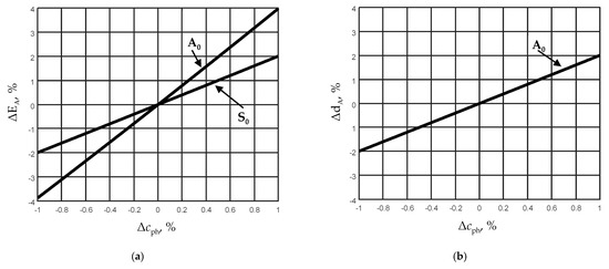 From the presented calculation results, it follows that the uncertainty of the A0 mode phase velocity Δcph = ±1% leads to the uncertainty of the film thickness ΔdA = ±2% (Figure 12b). In our case, when the absolute thickness of the film is 150 μm, it is ΔdA = ±3 μm. Correspondingly, the uncertainty of the S0 mode phase velocity Δcph = ±1% leads to the uncertainty of the Young’s modulus ΔES = ±2% (Figure 12a).