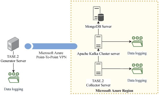 The use of the Microsoft Azure service allowed us to simplify the deployment process, as the automated orchestration script was created to install all components, prepare the environment, and launch the tests without the need for user interaction in all geographical locations. For this purpose, we used predefined Azure machines in D4s_v3 and B2s configurations for TASE.2 collectors and Apache Kafka brokers with MongoDB, respectively. The exact hardware parameters of these machines are listed in Table 1 [].