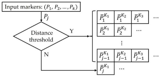 As shown in Figure 5, the error of two marker positions in the multiple calibrated Kinects, , where and is the total number of Kinects, is calculated as follows: