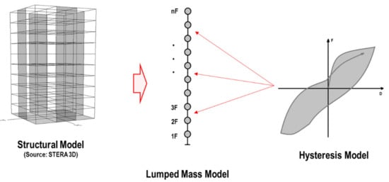 In this study, a lumped mass model (LMM) is considered as the structural model of the building, which takes into account the concentrated mass and the hysteresis model in each story of a low- to mid-rise building as shown in Figure 1.