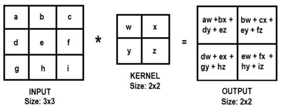 The convolution of the input image is performed by applying a set of weights, also known as a kernel or filter, as shown in Figure 9 [].