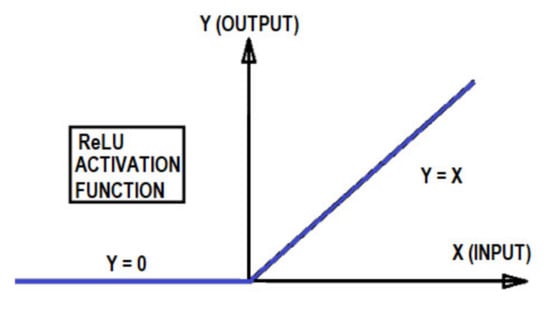 Then, every resultant matrix is evaluated by a nonlinear activation function to allow for the learning of more complex models. The nonlinear activation function (activation function from now on) used in this study is the rectified linear unit (ReLU), defined as the function Y = max(X, 0) [], as shown in Figure 11.