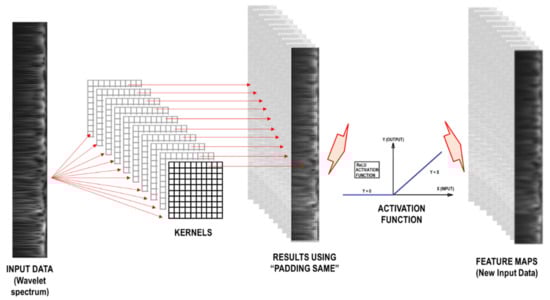 Typical convolutional layer, note that the input data is a representation of the wavelet coefficient’s matrix.