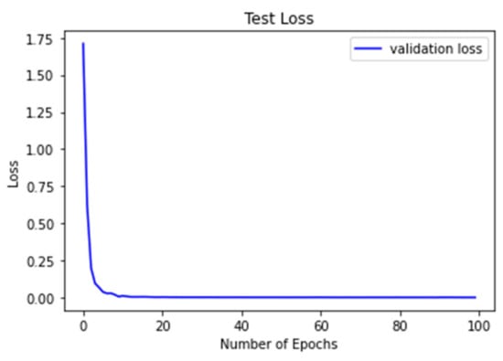 Figure 15 shows the convergence curve of the CNN model using the CNN architecture shown in Table 2, where “Loss” is the value of the loss function, and “Number of epochs” is the number of training iterations over the input data [].
