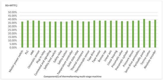 Using the exponential function given by expression 6, the reliability of all the components is calculated in a time equal to MTTF. Figure 4 shows the results.