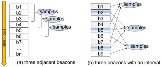 As anchor-free localization methods, many researchers proposed mobile beacon methods [31,32,33,34]. Since localization error is reduced as the number of anchor nodes increases, several localization algorithms consider each of the dynamic locations of moving nodes as an individual virtual “anchor” [31,32]. Other anchor-free algorithms [33,34] select anchor points in RSSI-Range circles and track locations using the properties of the perpendicular bisectors of circles and chords.