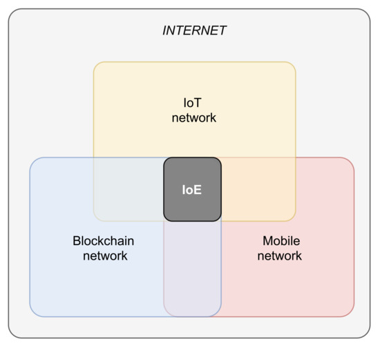 The proposed IoE paradigm can exploit such an environment since the radio coverage allows data exchange between entities and trackers and between trackers and distributed ledgers.