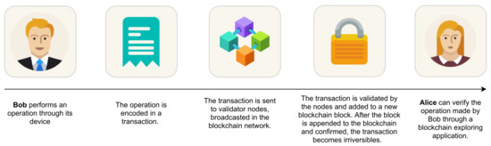 The blockchain data structure has been introduced in the context of cryptocurrencies like Bitcoin [2,8] and, later, Ethereum [9], as a shared and transparent distributed ledger to store and trace financial transactions. It can be imagined as an ever-growing chain of blocks, where each block stores a set of transactions and contains a cryptographic signature of its predecessor, thus making it computationally hard to alter or remove the older blocks. However, its functionality can also be exploited in non-financial contexts, in all the cases where an application needs to ensure trust services. In other terms, it can be employed to define the underlying trust level of an application. For example, its ability to verify identity through a reliable authentication process [10] is nowadays exploited in the context of heterogeneous environments, such as, for instance, those related to e-health [11], smart cities [12], and IoT [13] applications.