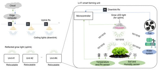Javed, S.; Issaoui, L.; Cho, S.; Chun, H. Utilization of LED Grow Lights for Optical Wireless Communication-Based RF-Free Smart-Farming System. Sensors 2021, 21, 6833. https://doi.org/10.3390/s21206833