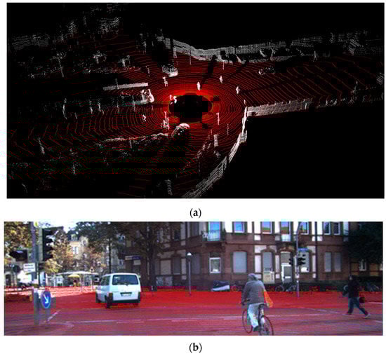 - Meyer, G.P.; Charland, J.; Hegde, D.; Laddha, A.; Vallespi-Gonzalez, C. Sensor Fusion for Joint 3D Object Detection and Semantic Segmentation. In Proceedings of the IEEE Conference on Computer Vision and Pattern Recognition, Long Beach, CA, USA, 16–17 June 2019; pp. 12677–12686. [Google Scholar]