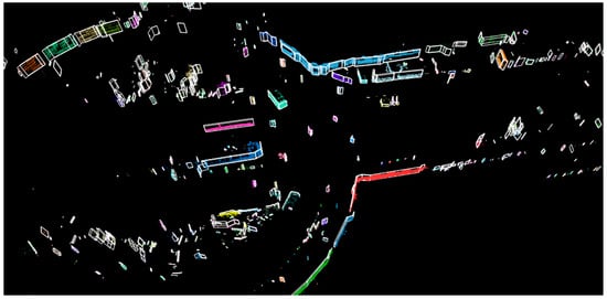 In [32,33], the authors underline that the cuboid representation is not suitable for objects because it overestimates the space occupied by non-L-shaped objects, such as a circular fence or a more complex building. A better representation of the objects is by polylines or facets.