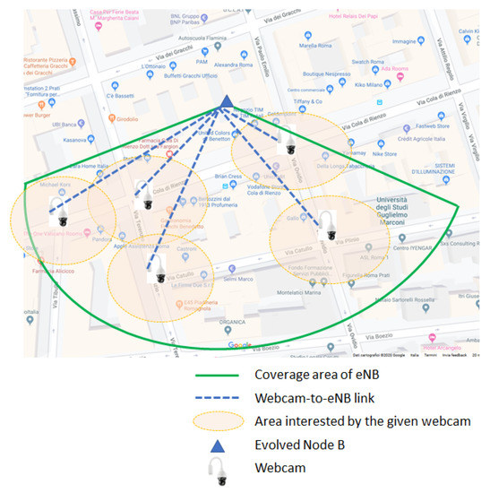 - Path D: it refers to the communication Architecture 2 including MEC; images are processed inside the MEC located in the BBU. In this case, the camera is connected to the eNB to send images to the server in the MEC and is:The alarm is sent to the intended driver using the eNB of the cellular system. Even in this case, we assume that eNB downlink data channel is used to send the alarm.