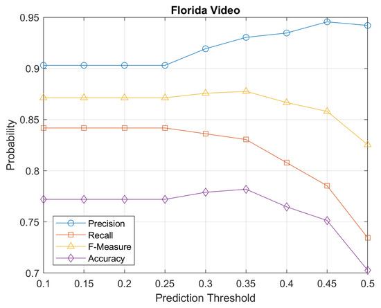Metrics as a function of threshold of degree of certainty in Florida video.