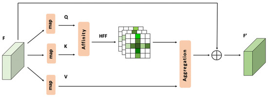 The attention area needs to be extracted. For the pixels at different locations, the size of the attention area is different. The structure of RCCA module is shown in Figure 6.