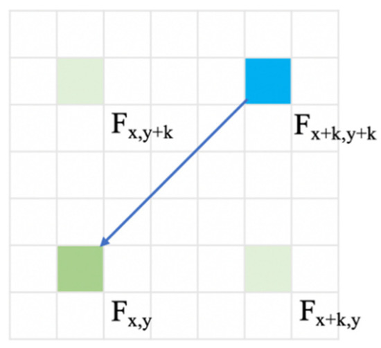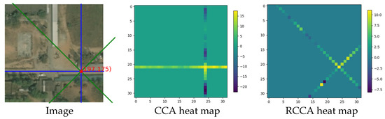 Considering the local information extracted by convolution, the DCCA module can let each pixel perceive the local information and eight-direction nonlocal information, as shown in Figure 10.