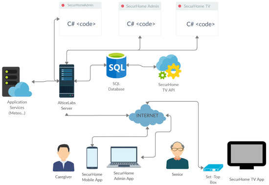 Figure 2 illustrates the system architecture of the ecosystem, developed in the scope of the SecurHome TV project, where the mentioned components and the relationships between them are represented.