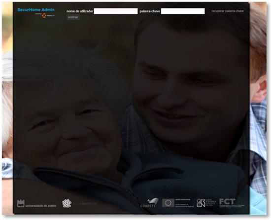 After loading the application, the user is directed to the access screen and must press OK to enter. Next, the user selects the desired profile and is asked for the access code, which is composed by four digits (Figure 3). It is worth saying that, in the future, this login process should be improved to allow automatic identification of the elderly/elderlies in order to cope with recognition of multiple users [28]. In addition, and despite the already implemented access code scheme and the fact that this system is targeted to be used by elderlies living alone or at the most with their partners (lowering privacy issues), it is the aim of the Securhome TV researchers to find a better solution to cope with the privacy issues identified in [28,29].
