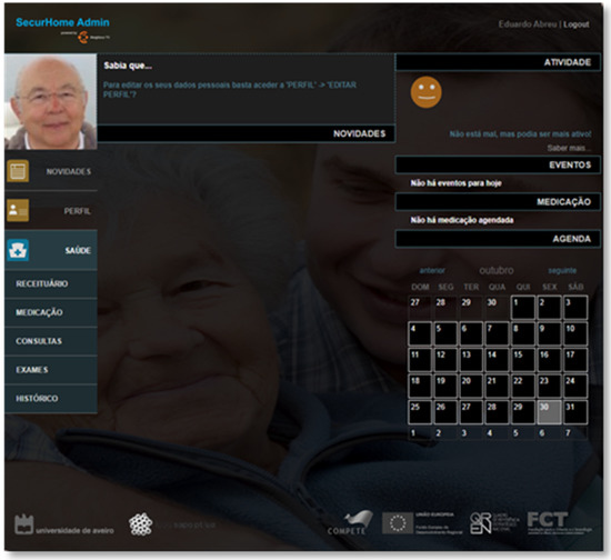 From the SecurHome Admin application, the caregiver can manage the profiles of his/her dependents and his/her own profile. In relation to his/her dependents’ profiles, the caregiver can add the senior’s usual medication, and the medical appointments and exams that he/she has scheduled. After scheduling the medication, the respective reminders will be triggered in the SecurHome TV application (Figure 1).