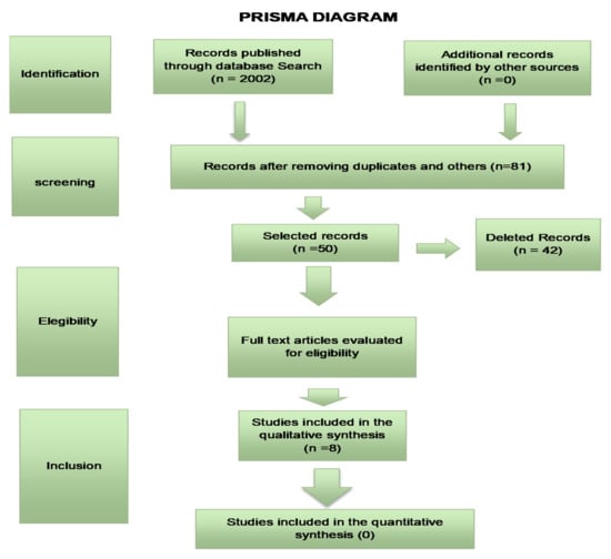 The bibliographic search followed the development of the SR protocol (Systematic Review) of the literature and will follow the Preferred Reporting items for Systematic Reviews and MetaAnalyses (PRISMA) guidelines (Figure 2) which provides a checklist for transparency in the selection process of articles.