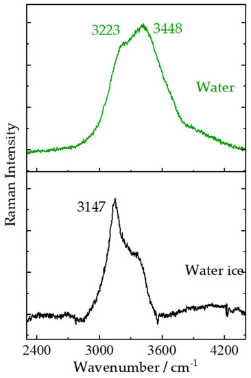 - Đuričković, I.; Claverie, R.; Bourson, P.; Marchetti, M.; Chassot, J.; Fontana, M.D. Water–ice phase transition probed by Raman spectroscopy. J. Raman Spectrosc. 2011, 42, 1408–1412. [Google Scholar] [CrossRef]