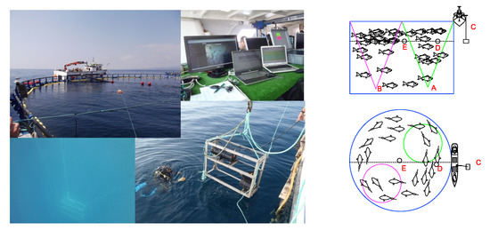 - Komeyama, K.; Kadota, M.; Torisawa, S.; Takagi, T. Three-Dimensional Trajectories of Cultivated Pacific Bluefin Tuna Thunnus Orientalis in an Aquaculture Net Cage. Aquac. Environ. Interact. 2013, 4, 81–90. [Google Scholar] [CrossRef]