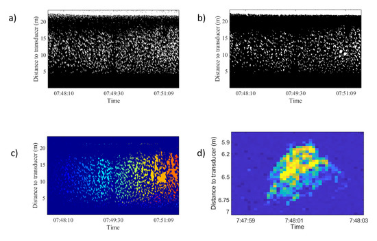 - Urmy, S.S.; Horne, J.K.; Barbee, D.H. Measuring the vertical distributional variability of pelagic fauna in Monterey Bay. ICES J. Mar. Sci. 2014, 69, 184–196. [Google Scholar] [CrossRef] [Green Version]