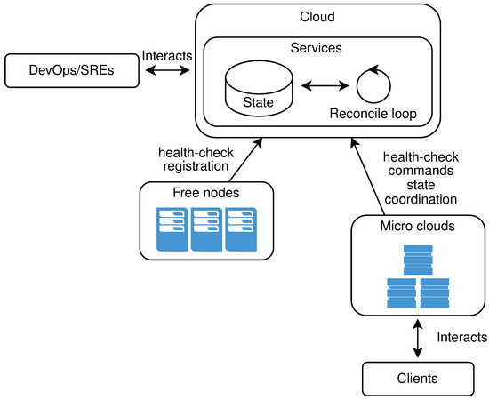 Compared to the traditional CC model, where new nodes have to be brought and connected physically to the rest of the infrastructure [28], in the μC model, a node needs to connect to the network. The formation of the higher concepts should be done descriptively and dynamically by changing the concept definition. This rule applies to nodes belonging to the cluster, cluster belonging to the region, and region belonging to the topology. It is important to note that we assume nodes inside the cluster run some membership protocol. Table 1 sums up the difference between cloud and μC infrastructure elements. The accent in comparison is on the physical and the logical infrastructure concepts.