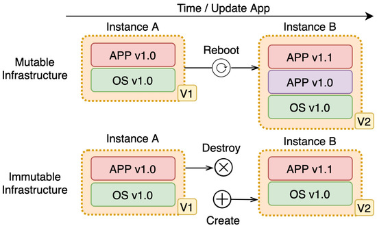 - Mikkelsen, A.; Grønli, T.; Kazman, R. Immutable Infrastructure Calls for Immutable Architecture. In Proceedings of the 52nd Hawaii International Conference on System Sciences, HICSS 2019, Grand Wailea, Maui, HI, USA, 8–11 January 2019; pp. 1–9. [Google Scholar]