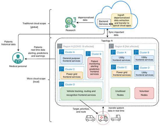 In MDCs, a cluster is as big as the population nearby requires [21]. In our solution, we imply this valuable restriction. Combining with the previous definition, we get that the μC regions are composed of at least one cluster but can be composed of much more, to achieve a more resilient, scalable, and available system. Multiple regions form the highest logical concept–topology. Topology must have at least one region, but it could span over multiple regions—the topology is capable of accepting/releasing regions.