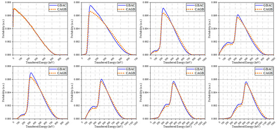 The isomer transition spectra modified through Gaussian broadening replaced the primary spectra and created the base spectra in the same way. The base spectra obtained by these methods were normalized to have identical areas. There was no significant difference in most spectra according to the order of convolution and Gaussian broadening. Through this process, however, we confirm that when simultaneously contributing to a signal through independent interactions, there could be a difference in the low-energy area in which the performance of the system is relatively degraded. The spectra from two methods are described in Figure 4 and GBAC-based spectra were used in the discussion of the remaining results.