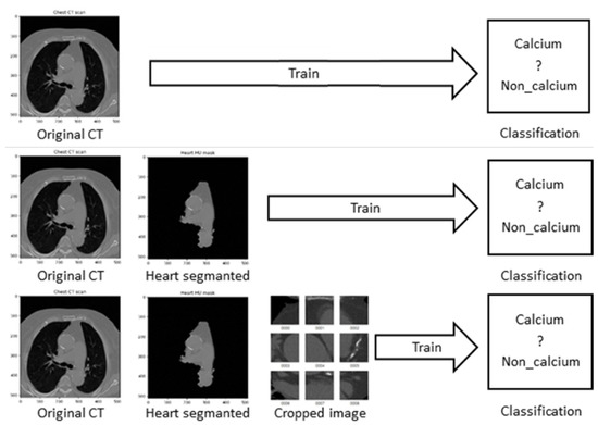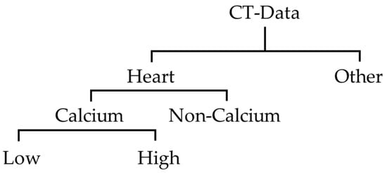 Coronary artery calcification is a phenomenon in which waste or calcium accumulates and hardens in the blood vessel wall of the coronary artery. Coronary artery calcium (CAC) score, a marker of subclinical coronary atherosclerosis, reflects the cumulative exposure to cardiovascular risk factors over the lifetime, and can inform shared decision-making regarding the use of preventive therapies [3,4]. It can be diagnosed by methods such as treadmill test, radionuclide scan, computed tomography (CT) scan, magnetic resonance imaging (MRI) scan, and coronary angiography [5,6,7]. CAC-CT can be used to score CAC. However, these methods generally require a specialist to manually check all data one-by-one. In addition, in the case of medical images, a radiologist must directly check and input each image using medical software, prior to diagnosis.
