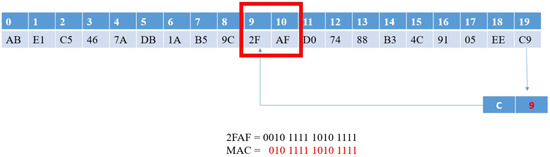 Because of the characteristics of one-way hash functions, the offset value after each calculation is not fixed. Therefore, our method ensures that for each calculation, the extracted data is a random value. When extracting , the most significant bit (MSB) is ignored to obtain the MAC value: