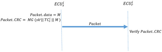 However, in the CAN bus, the transmitter’s and receiver’s counters cannot be synchronized, and in the event of a missing packet, both parties become desynchronized. Therefore, we used system time to replace the counter to calculate the MAC.