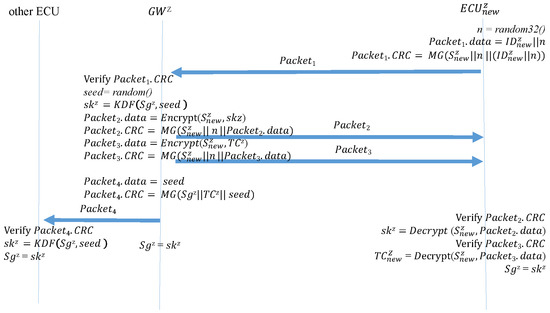 - System initialization. Before the vehicle leaves the factory, the gateway is set to share a key with individual ECUs in the subnet. This key is only used when adding or removing devices. The gateway shares the same group key with all the ECUs in the subnet, and this group key is used to generate session keys.