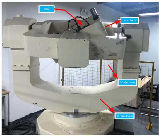 To verify the effectiveness of the algorithm in this paper. We set up a swing experiment platform based on a fiber optic gyro strapdown inertial navigation system on the three-axis turntable in the laboratory to simulate the marine environment of the ship. The test equipment is shown in Figure 3.