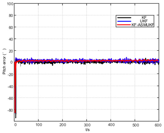 Pitch error results based on KF-ASMUKF hybrid filtering algorithm.