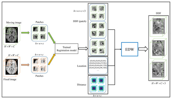Most of these methods can remove grid-like artifacts of DDFs with probabilistic models, a small stride, and estimating only the central region, etc. However, they cannot quickly obtain DDF without these grid-like artifacts at a large stride. Hence, we have applied an exponential-distance-weighted (EDW) scheme to the patch fusion process. Compared with the fusion methods used in the above literature, the EDW patch fusion strategy proposed in this paper can achieve more significant performance in a larger stride in a shorter time. Our code is freely available at https://github.com/LiangWUSDU/EDW (accessed on 24 September 2021). The main contributions are summarized as follows: