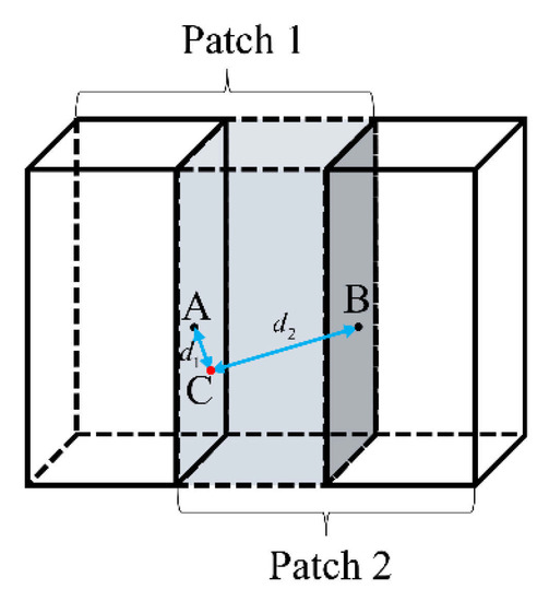 Some of the common distance functions in the field of image processing are Euclidean distance [9], Manhattan distance [9], Chebyshev distance [10] et al. These three functions are all metrics which compute a distance value based on two data points, and they are widely used in medical image processing [11,12]. Hence, in this work, we evaluated these three distance functions. The patch size is . In the patch coordinate system, the coordinate of any point is , , , . The coordinate of the center point of the patch is .