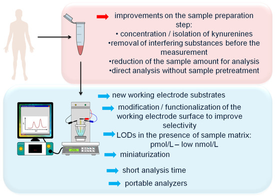 Further development of electrochemical methods for monitoring and quantification of KP metabolites in a variety of biological milieus could fit in the current directions of modern analytical chemistry. New developments in the following areas are extremely important: