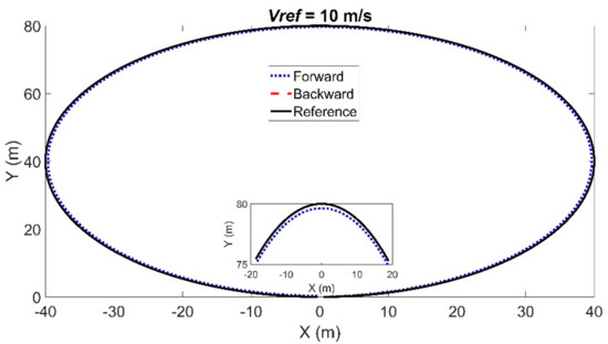 In the second scenario, the vehicle was required to track a circle with a radius of 40 m. The parametric equations for the circle were